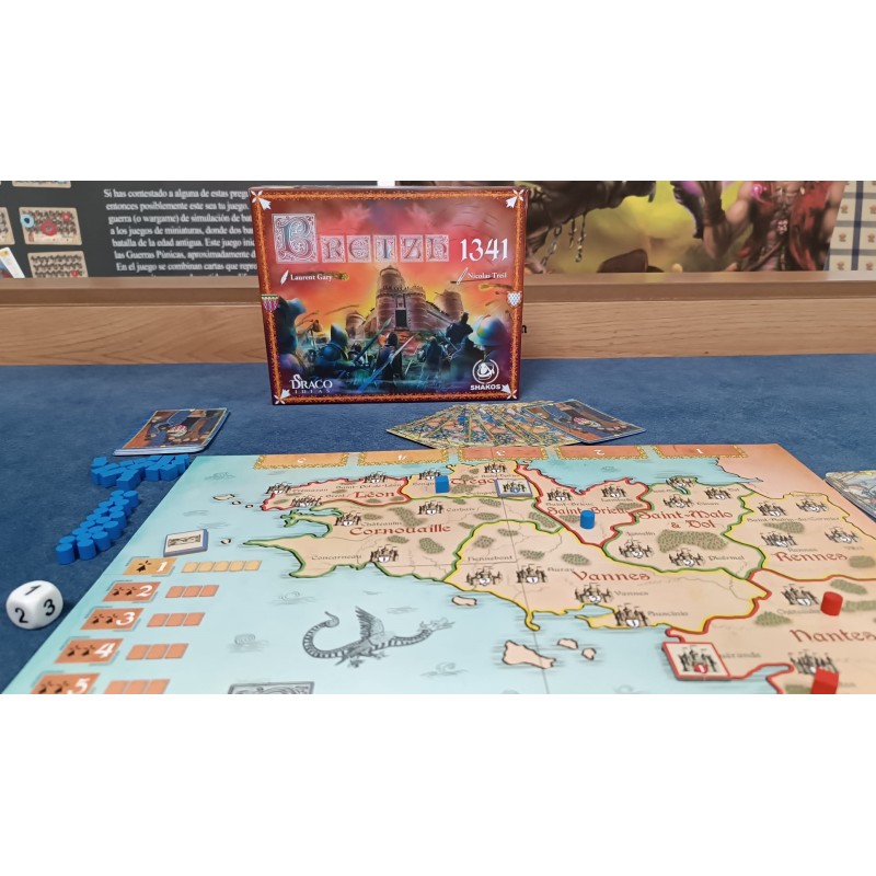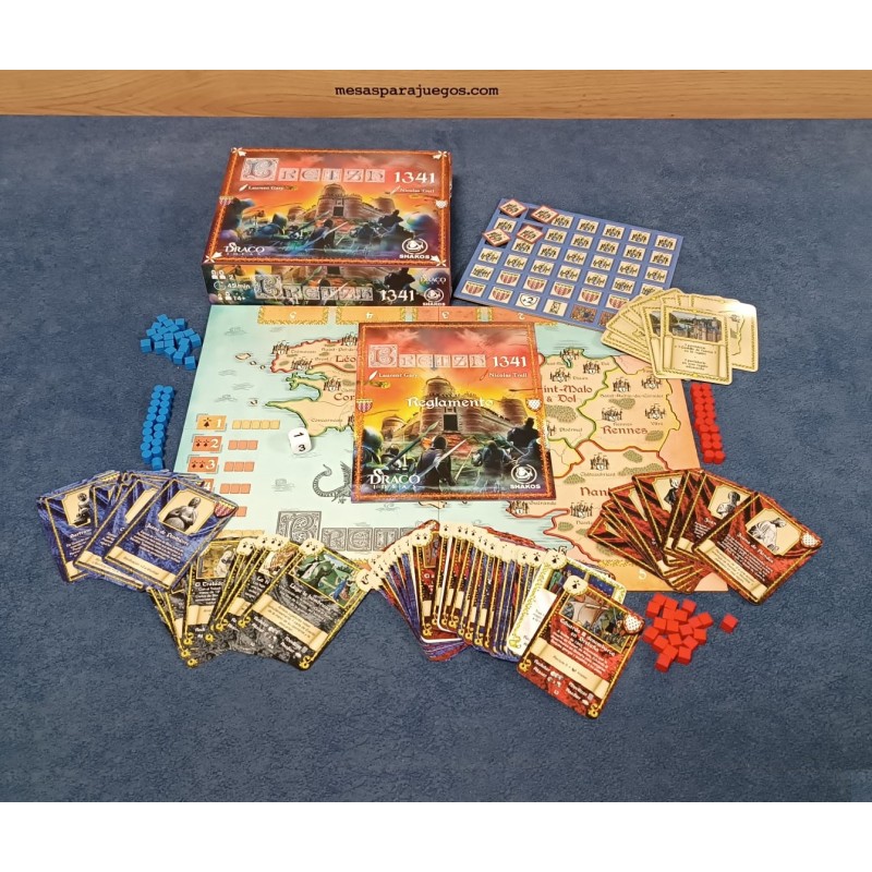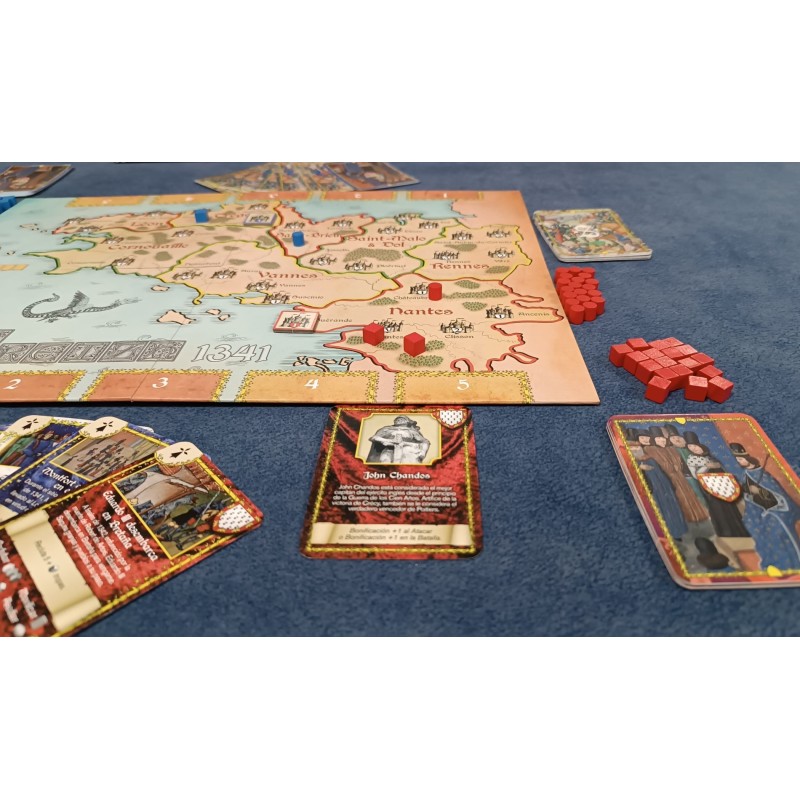 Breizh 1341 es un juego de cartas entre dos jugadores: uno lidera a los franco-bretones de Charles de Blois y el otro a los anglo-bretones de Jean de Montfort. La partida se desarrolla en turnos, durante los cuales cada bando lleva a cabo acciones militares y diplomáticas similares a las habituales en el siglo XIV. Las figuras históricas también influyen en el desarrollo de la partida. Es necesario movilizar nobles para apoyar tu reivindicación, reclutar tropas y, posteriormente, conducirlas a la batalla o enviarlas a asediar castillos. Tras años de enfrentamientos, ¡el jugador que controle más territorios, castillos y partidarios se convertirá en el nuevo Duque de Bretaña!