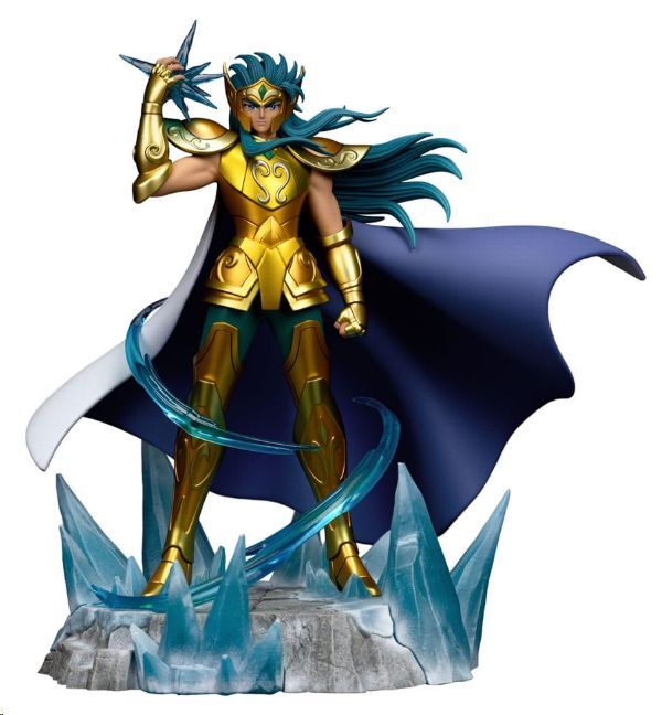 El guardián de la Casa de Acuario cobra vida en esta impresionante estatua! Camus de Acuario, el Caballero de Oro maestro del hielo, se presenta con todo su poder en esta figura de 28 cm, fabricada en poliresina con un nivel de detalle digno del mismísimo Santuario. Su pose imponente y su armadura dorada lo convierten en una pieza imprescindible para cualquier seguidor de Saint Seiya.