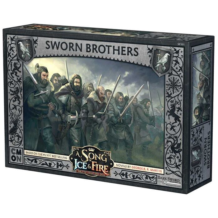 Puede que las fuerzas de la Guardia de la Noche se nutran de reclutas, criminales y gentuza de lo más variada; sin embargo, una vez visten el negro y pronuncian sus votos, los hermanos juramentados se crecen hasta convertirse en hombres leales que se dedican a defender el Muro de toda incursión. En el fragor de la batalla, se puede confiar en que el más común de los hermanos juramentados mantendrá el tipo ante enemigos terroríficos y repartirá devastadores golpes con su poderoso montante. A pesar de que carecen de la especialización de otras unidades de la Guardia de la Noche, todo ejército necesita una espina dorsal. Los comandantes hábiles deberían evitar que los flanquearan o los rodearan; y, en vez de ello, permitir que la línea de hermanos juramentados sirva como refugio para otras unidades con capacidades más diversas.