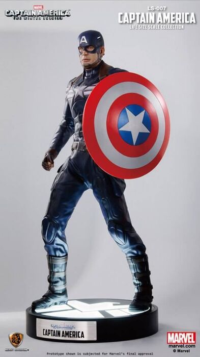 Beast Kingdom presenta esta estatua Life Size del Capitán América en la versión de la película "Capitán América: El soldado de invierno" . Esta estatua mide cerca de 2 metros y está hecha en FRP (polímeros reforzados con fibra). Incluye escudo y una base soporte que se ilumina.