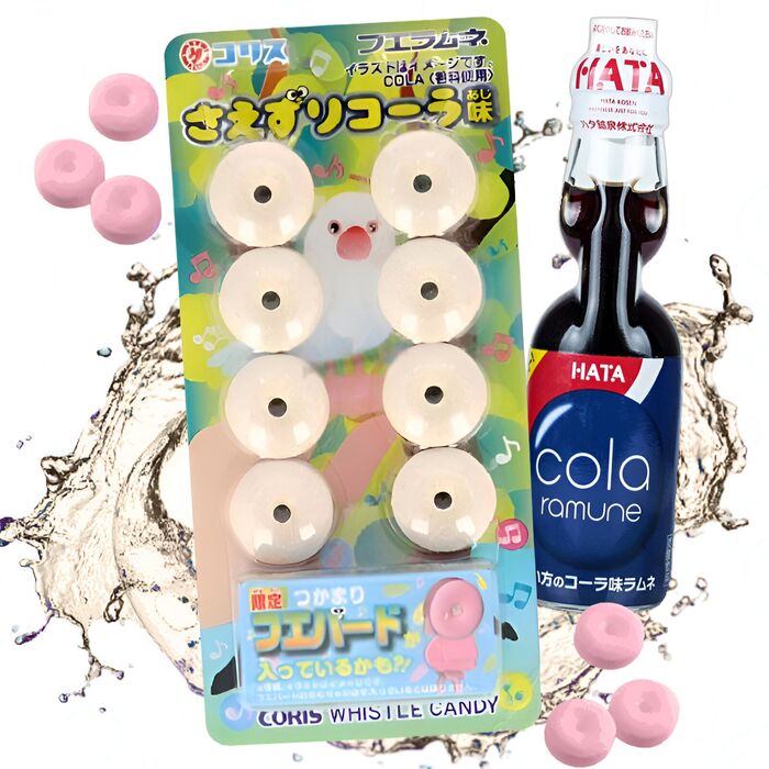 El caramelo más divertido de Japón llega a Comic Stores! Coris Whistle Fue no solo es un dulce con un intenso sabor a cola, sino que además puedes hacerlo sonar como un silbato antes de comerlo. Su textura crujiente y su inconfundible sabor lo convierten en un snack ideal para los amantes de los caramelos japoneses. Está elaborado con glucosa, azúcar, emulsionantes, acidulantes, aromatizantes y colorante caramelo. Además, su interior contiene una pequeña sorpresa para hacerlo aún más especial.