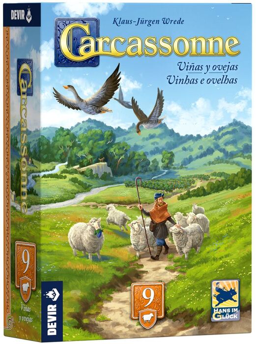 https://comicstores.es/producto/carcassonne-exp-9-vinas-y-obejas_595973595973CARCASSONNE EXP. 9 - VIÑAS Y OBEJASLa caja de viñas y ovejas incluye 19 nuevas losetas con viñedos, que dan más valor a monasterios y jardines. También incluye seis peones de pastor (de colores distintos, uno por cada jugador); los pastores darán puntos en función de su rebaño y si hay gansos cerca todavía serán más rentables. Por último, la caja trae una bolsa de tela y 18 fichas (16 de rebaño y 2 de lobo). La bolsa aporta un elemento de riesgo al juego; cuantas más fichas de rebaño consigas, más puntuará tu pastor, pero si sacas una ficha de lobo, perderás todas tus ovejas.