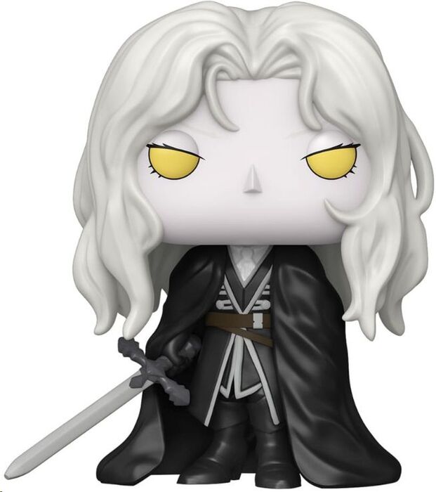 Alucard, el icónico antihéroe de Castlevania, llega en esta impresionante figura Pop! inspirada en la serie animada Nocturne. Su piel pálida, ojos dorados penetrantes y melena blanca caen con elegancia sobre una capa negra que da vida a su aura misteriosa y poderosa. El estilo oscuro y elegante del personaje ha sido recreado con todo lujo de detalles.