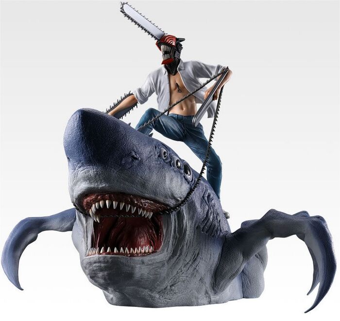 Sumérgete en el universo de Chainsaw Man con esta espectacular figura de la línea premium Ichibansho de Bandai Spirits. Con una altura de 23 cm, esta pieza captura a Denji transformado en Chainsaw Man en plena acción, acompañado por Beam, el demonio tiburón, en una pose dinámica y salvaje que refleja la intensidad del anime.