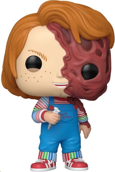 Esta figura Pop! de Chucky con el rostro derretido es puro terror concentrado en 9 cm. Inspirada en su apariencia más perturbadora de la serie de televisión, mezcla el encanto macabro del muñeco Good Guy con el horror gráfico de su lado quemado y desfigurado.