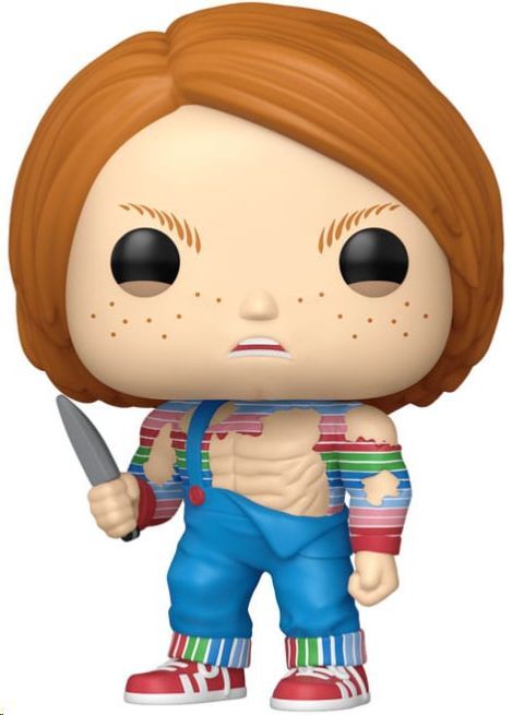 Este Funko Pop! trae a Chucky en una versión exclusiva y muy diferente, mostrando un aspecto musculoso que mezcla lo terrorífico con lo divertido. Con su inconfundible cabello rojo, pecas y su cuchillo en mano, este diseño convierte al muñeco diabólico en una pieza única para cualquier colección.