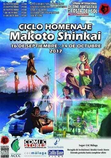 La Semana Internacional de Cine Fantástico de la Costa del Sol, Comic Stores y el Centro de Arte Contemporaneo de Málaga (CAC) tienen el placer de invitarte al ciclo homenaje del director de anime Makoto Shinkai.