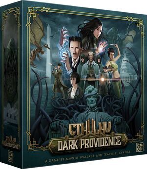 Cthulhu: Dark Providence es un juego de tablero competitivo en el que los jugadores se dividen secretamente en distintos bandos de un conflicto sobre el destino de una nación al borde de la ruina. Los jugadores utilizan su influencia para pujar por el derecho a reclamar bienes, tomar el control de ciudades y conspirar con poderosas entidades de los Mitos. Para mantener la cordura y el secreto, los jugadores realizan diversas acciones, como reclutar agentes, eliminar rivales, bloquear oponentes y sellar o proteger puertas a dimensiones ultraterrenas para avanzar en su agenda y ganar puntos. A pesar de estar divididos en bandos opuestos, ¡sólo el jugador con la mayor puntuación de la facción líder conseguirá la victoria y marcará el destino de la nación!