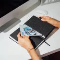 El cuaderno ofrece un formato cómodo y manejable, perfecto para tomar notas, organizar ideas o escribir de forma habitual.