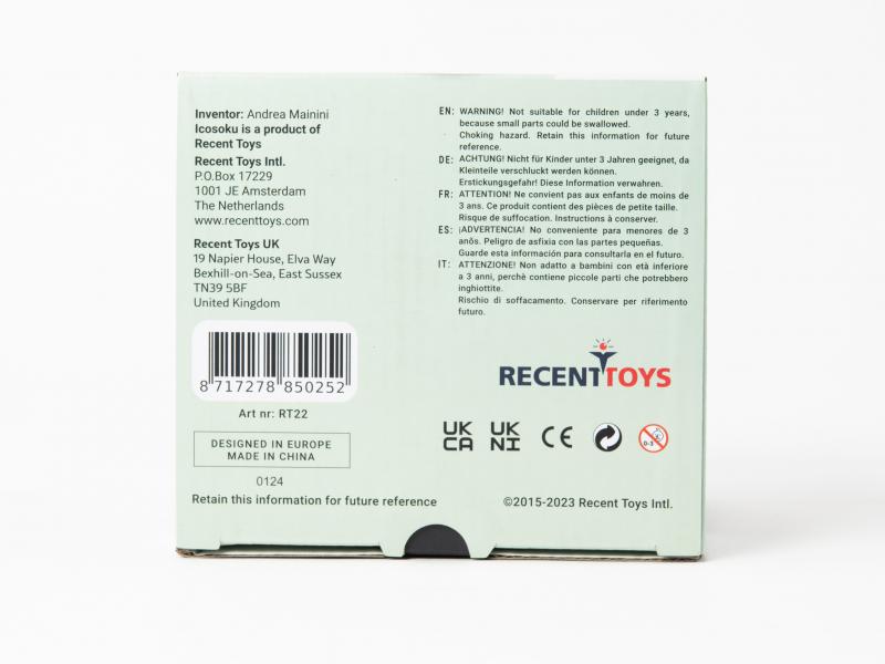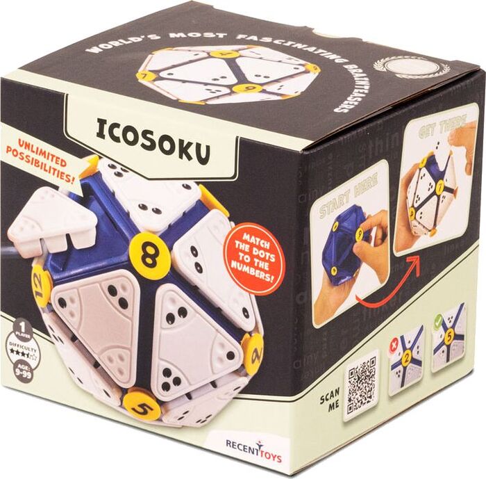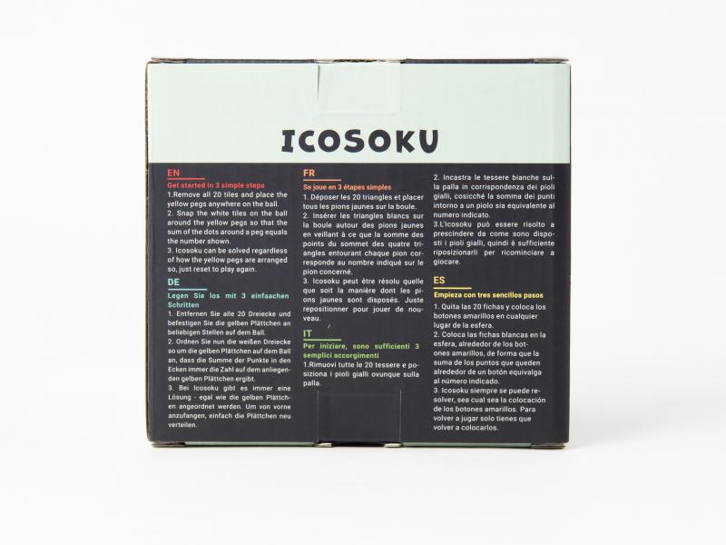 ¡El reto lógico más alucinante del universo tiene forma de icosaedro! Con el Icosoku pondrás a prueba tu agilidad mental colocando las fichas blancas de puntos de forma que la suma coincida con el número de cada botón amarillo. Puedes colocarlos como quieras... ¡y siempre habrá una solución! Cada partida es distinta, y resolverlo te hará sentir como un auténtico maestro del ingenio.
