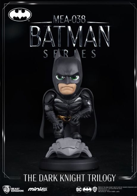 Esta figura es parte de la línea "Mini Egg Attack" y está inspirada en la aclamada trilogía "The Dark Knight" de Christopher Nolan. La minifigura de PVC, que mide aproximadamente 8 cm de altura, captura a Batman con el traje que utilizó en estas películas, caracterizado por su diseño táctico y moderno.