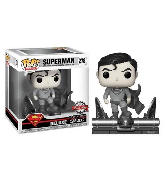 Esta figura POP! Deluxe de Superman rinde homenaje al legendario artista Jim Lee y su versión épica del Hombre de Acero. Con un diseño monocromático que evoca las tintas del cómic, vemos a Superman en una imponente pose sobre una gárgola, como vigilando Metrópolis desde las alturas.