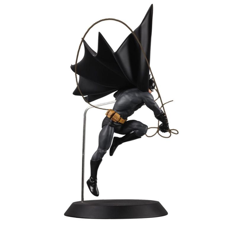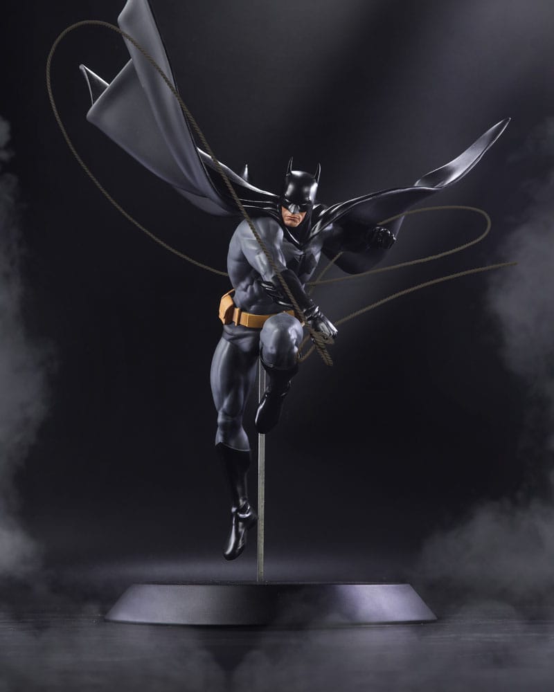 La meticulosa atención al detalle en la textura del traje y la dinámica de la capa resaltan la calidad artística de la estatua, que se presenta en una elegante caja con ventana, ideal para exhibición o como pieza central de cualquier colección de figuras DC. Esta estatua no solo es un homenaje a Batman, sino una celebración del arte de Dan Mora, haciendo de ella una adquisición imprescindible para coleccionistas y aficionados al universo DC.