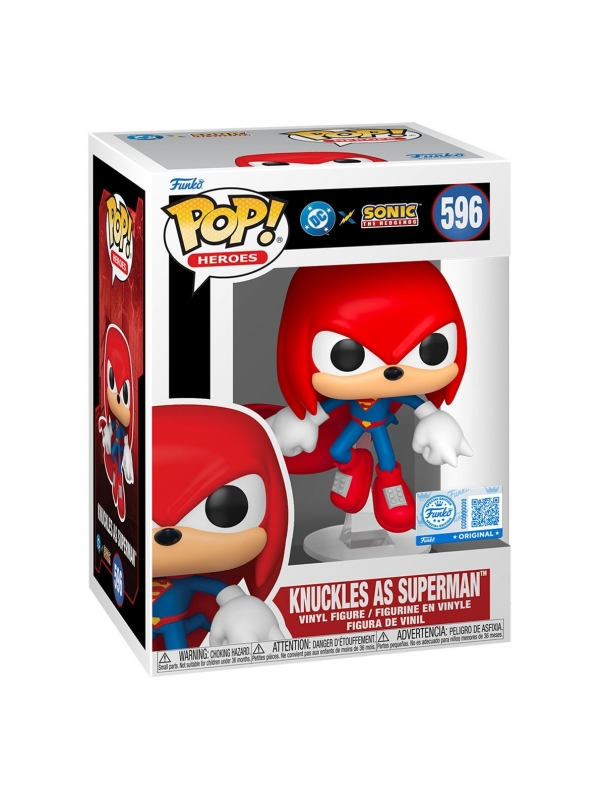 Esta figura Pop! de 9 cm presenta a Knuckles, el emblemático equidna rojo de la saga Sonic, fusionado con la apariencia de Superman. Viste el clásico traje azul con el escudo amarillo y rojo en el pecho, acompañado de capa roja ondeante y botas a juego.