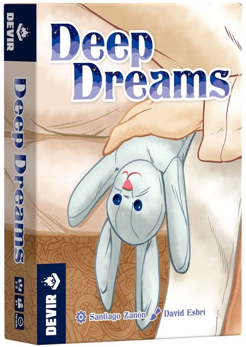 Diseñado por Santiago Zanón e ilustrado por David Esbrí, este juego de cartas está pensado para grupos de 2 a 6 jugadores, a partir de ocho años, y propone partidas cortas que duran entre 10 y 15 minutos. Vuestro objetivo en Deep Dreams es ayudar a Bruno a tener los sueños más agradables. Los sueños aparecen en cuatro colores diferentes en las cartas de sueño. Intentaréis formar los grupos de sueños más largos jugando cartas consecutivas con los mismos colores. Pero también debéis aseguraros de que Bruno no se despierte en mitad de la noche, creando un camino de sueño continuo con vuestras cartas. Además, conseguiréis puntos extra si conectáis flechas negras entre las cartas. Al final de la partida (cuando un jugador tenga 10 cartas en su zona de juego), el jugador con más puntos gana.