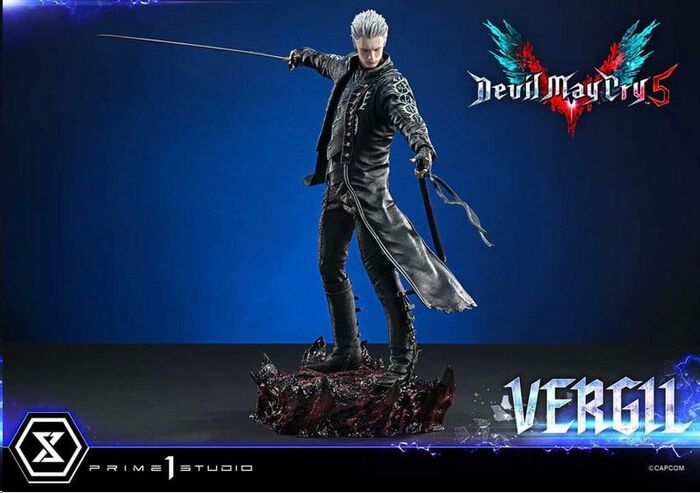 Eleva tu colección con la imponente estatua de la Concept Masterline Series a escala 1/6 de Vergil, el enigmático y poderoso espadachín de Devil May Cry V.