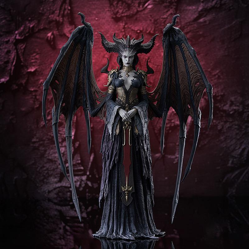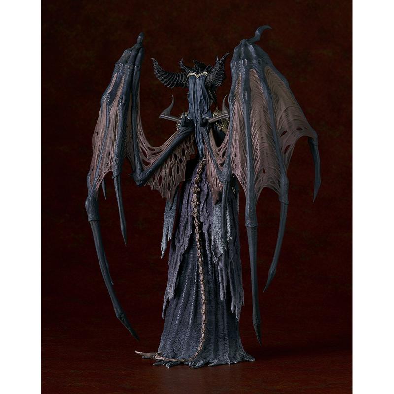 Cada detalle de la figura ha sido recreado con precisión, desde su gran cornamenta y expresión fría hasta sus alas demoníacas desgarradas que evocan su poder ancestral. Su vestimenta oscura y ornamentada refleja la esencia de la Reina de los Condenados, convirtiéndola en una pieza imprescindible para cualquier fan del universo de Diablo.