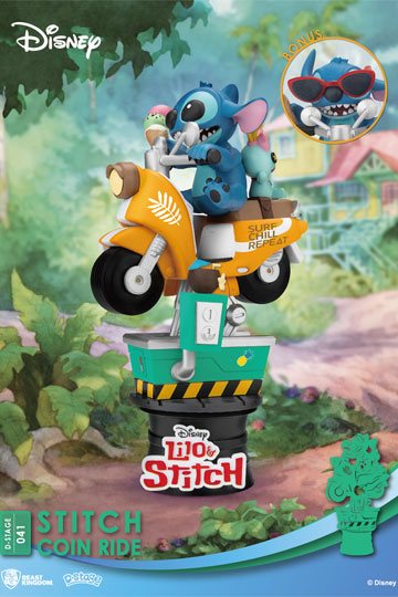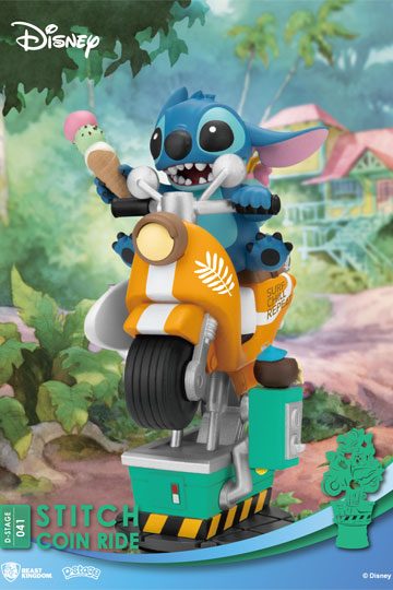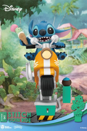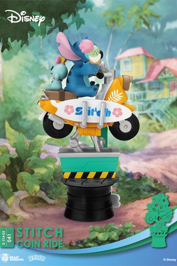 El Disney Diorama PVC D-Stage Stitch Coin Ride de 16 cm es una pieza de colección encantadora y vibrante que captura el espíritu aventurero de Stitch, el querido personaje de la película "Lilo & Stitch". Este diorama, parte de la prestigiosa línea "D-Stage" de coleccionables, se destaca por su diseño creativo y su meticulosa atención al detalle.