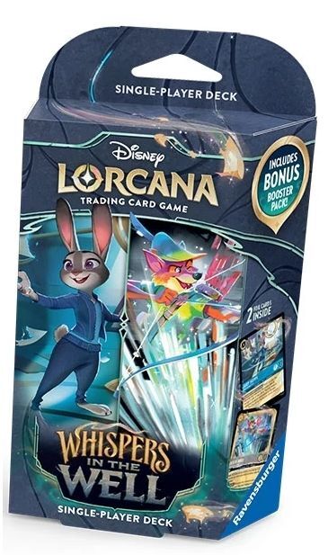 El Mazo para un jugador Ámbar-Esmeralda de Disney Lorcana TCG: Whispers in the Well en inglés es la elección ideal para quienes buscan empezar a jugar de forma rápida y sencilla. Diseñado para ofrecer partidas equilibradas, incluye todo lo necesario para lanzarte al mundo de Lorcana sin complicaciones.