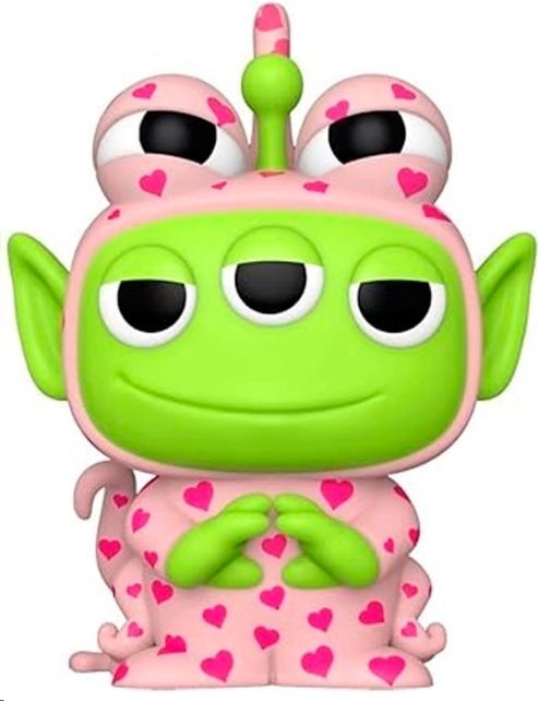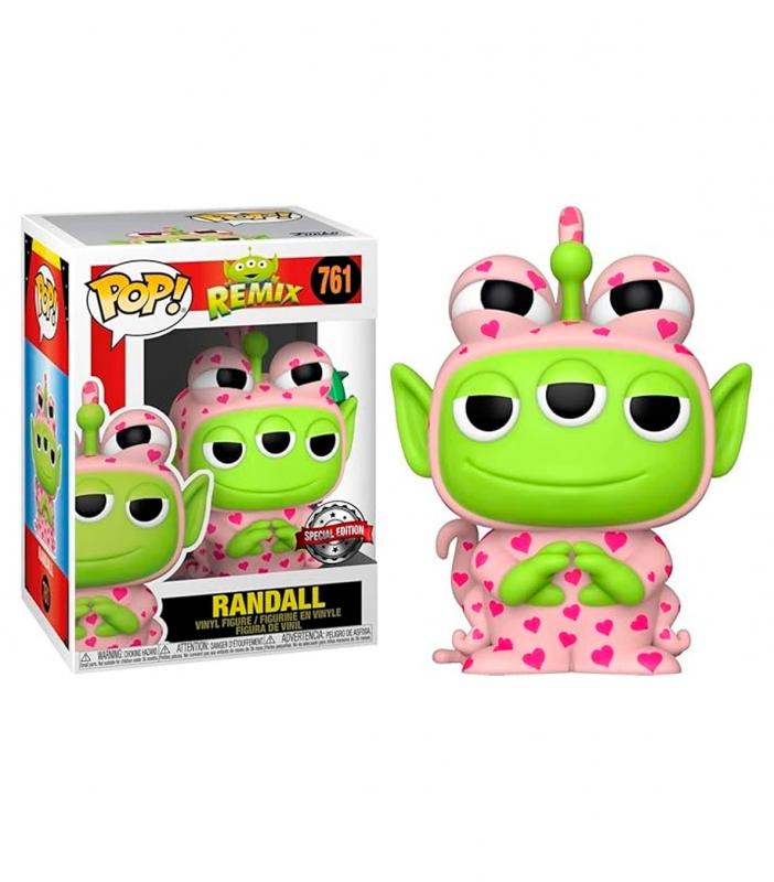 La colección POP! Remix de Pixar junta lo mejor de dos mundos, y esta figura del alienígena disfrazado de Randall es la prueba perfecta. Con su cuerpo verde y sus tres ojos característicos, este adorable alien se transforma en el camaleónico villano de Monstruos S.A., llevando un pijama rosa lleno de corazones que lo hace aún más entrañable.