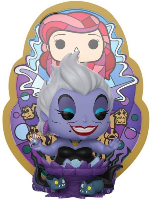 Figura Pop! Deluxe Vinyl de Úrsula, la icónica villana de La Sirenita de Disney, con una altura aproximada de 9 cm. Presenta su característico tono de piel púrpura, cabello blanco en punta y una gran sonrisa que refleja su personalidad astuta y manipuladora.