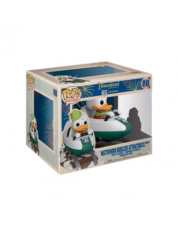 Esta figura POP! Ride nos presenta al querido Donald en plena aventura montañosa a bordo del Matterhorn Bobsleds, una de las atracciones más emblemáticas de Disneyland. Ataviado con un gorrito bávaro verde y su clásica expresión decidida, Donald se lanza por la pista nevada con total entusiasmo.