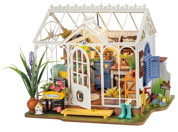 ¡Haz florecer tu creatividad con Dreamy Garden House de Rolife! Este kit DIY en miniatura te permite construir tu propio invernadero de ensueño, lleno de plantas, herramientas de jardinería, muebles adorables y una atmósfera acogedora iluminada con luz LED. Con 240 piezas y escala 1:24, recrea un refugio lleno de color y detalles que enamoran.
