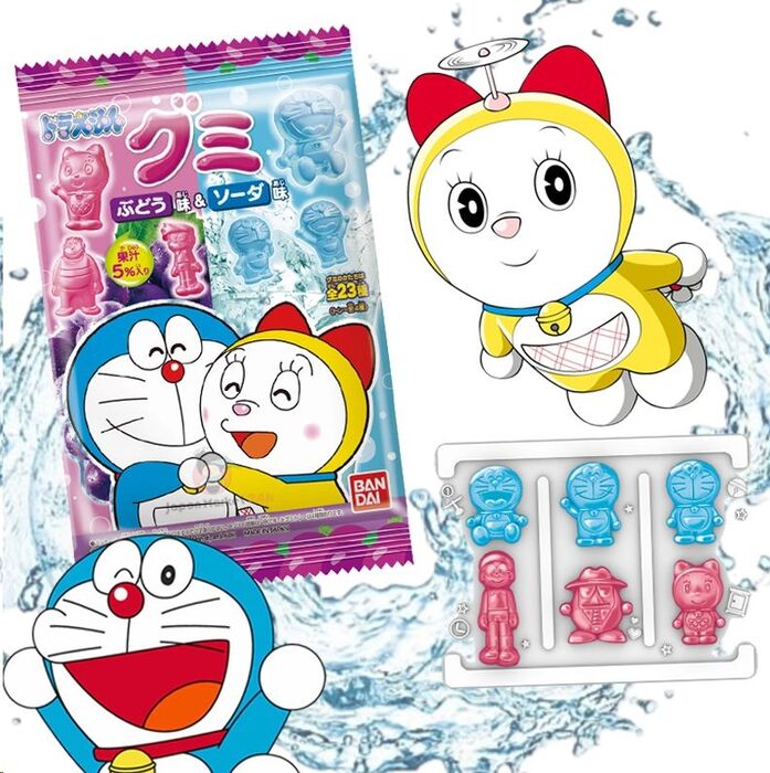 (Sabor uva)azúcar (producido en Tailandia), jarabe de malta, gelatina, almidón, zumo de uva concentrado, aceites y grasas vegetales/sorbitol, acidulante, aromatizante, colorante (colorante vegetal, amarillo de cártamo), emulgentes, (sabor soda)azúcar (producido en Tailandia), jarabe de malta, gelatina, almidón, aceites y grasas vegetales/sorbitol, acidulante, aromatizante, pigmento de gardenia, emulgentes.