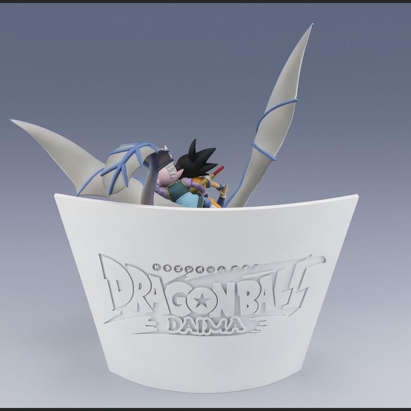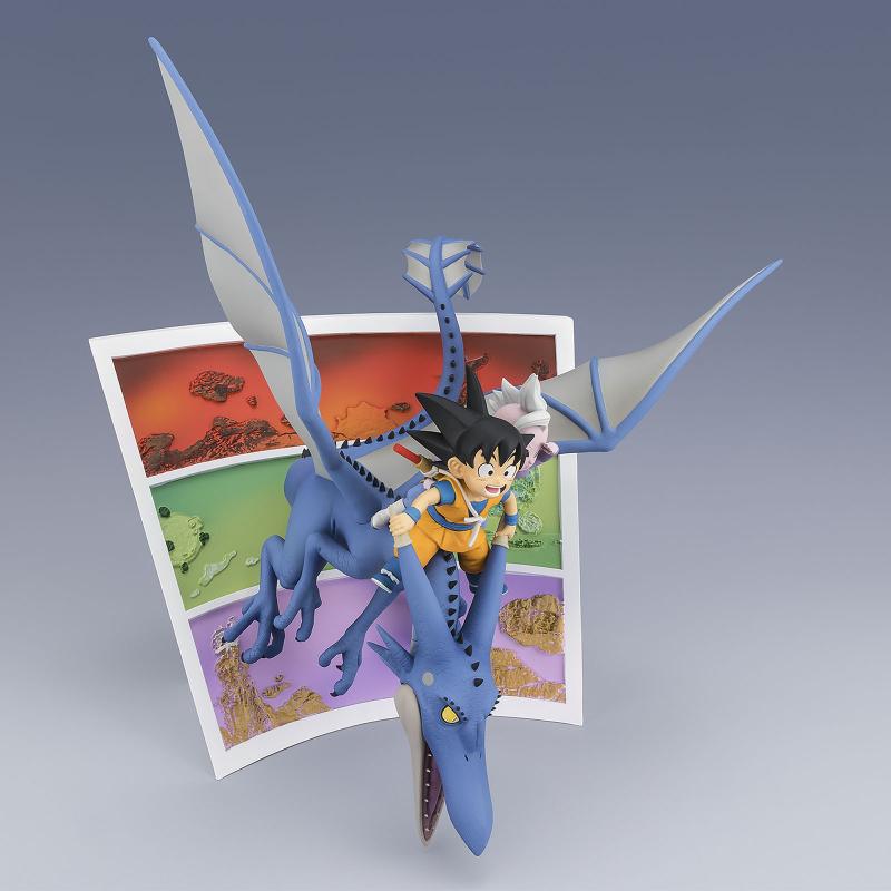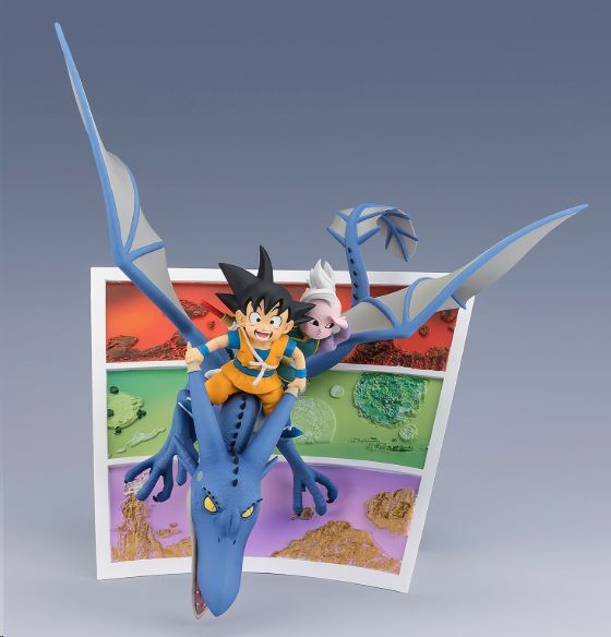 Los personajes se muestran cabalgando sobre el lomo de un majestuoso dragón, con expresiones llenas de vida y una pose que transmite la esencia de la serie. Incluye una base soporte y un fondo detallado inspirado en el Reino Demoníaco, lo que hace que esta figura luzca impresionante desde cualquier ángulo.