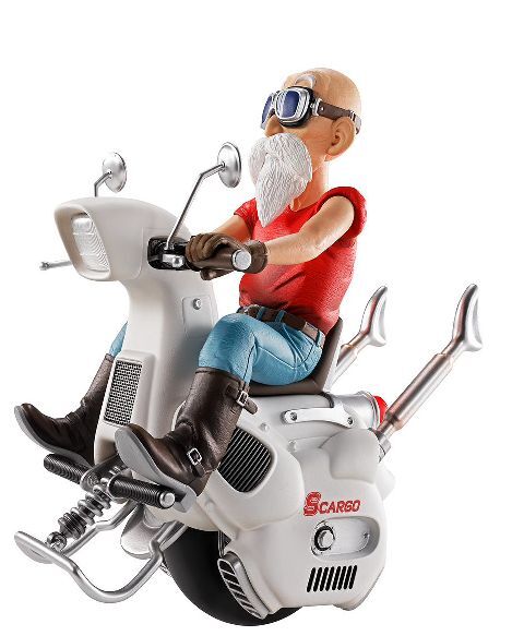 El maestro más loco del universo Dragon Ball llega sobre ruedas! Esta figura de Kame Sennin de la línea Snap Collection II Ichibansho lo muestra en su versión más cañera, montado en una moto futurista Scargo con gafas de aviador, barba al viento y actitud total.