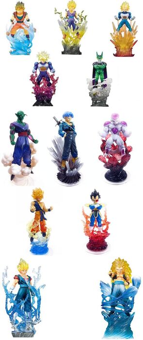 Los principales personajes de las sagas de Cell y de Freezer están representados en esta colección de 6cm de altura. La base de cada personaje representa su poder. Hay doce modelos que se venden por separado: Goku SS y Freezer, Vegeta y Trunks, Piccolo y Trunks SS, Gohan SS2 y Goku SS, Vegeta SS y Cell, Vegeto y Gotenks SS3.