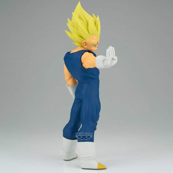Fabricada con gran nivel de detalle, esta pieza mide aproximadamente 31 cm, convirtiéndose en una de las representaciones más impresionantes del príncipe de los Saiyan. El acabado en los músculos, el uniforme de combate azul y los guantes y botas blancas hacen que luzca espectacular en cualquier colección. Su tamaño y diseño hacen que destaque incluso entre otras figuras de Dragon Ball.