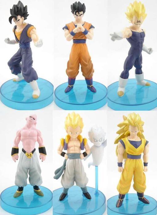 Los heroes más famosos de Dragon Ball Z están representados en esta colección de figuras de 11cm que incluyen base expositora. Hay 6 modelos diferentes que se venden por separado: Gohan, Vegeta, Gotenks, Majin Buu, Goku y Gogeta.