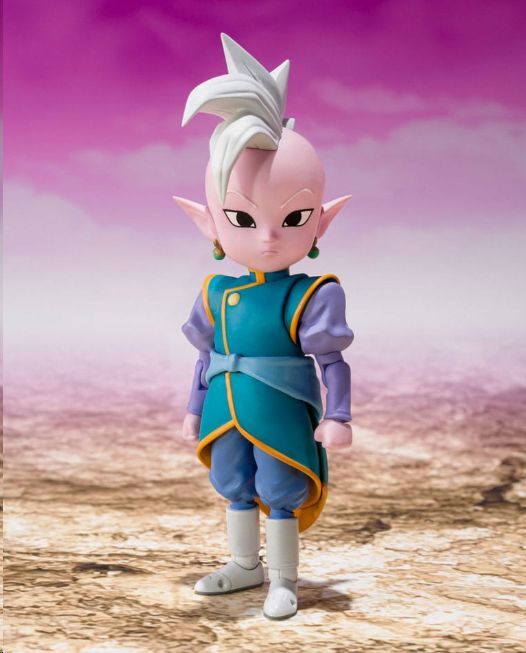Esta figura S.H. Figuarts presenta a Supreme Kai Mini en un tamaño aproximado de 7 cm, ofreciendo un diseño compacto que mantiene la esencia del personaje dentro del nuevo universo de Dragon Ball Super Daima. Su acabado cuidado y su estilo fiel lo convierten en una pieza destacable incluso en colecciones más amplias.