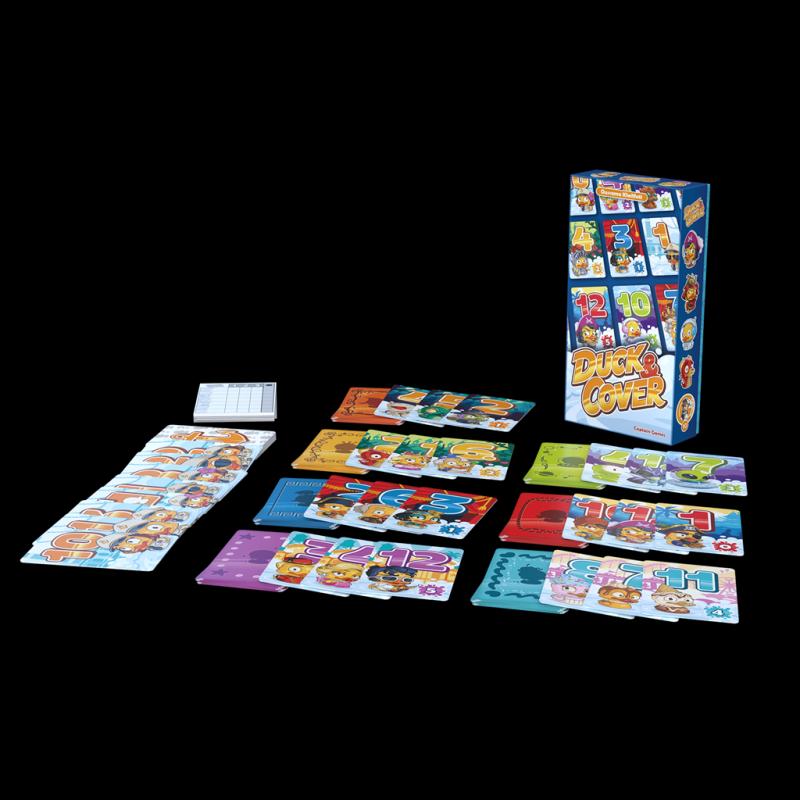 26 cartas de Robo, 84 cartas de Pato, 1 bloc de hojas de puntuación y reglas de juego.