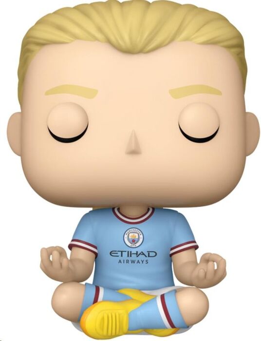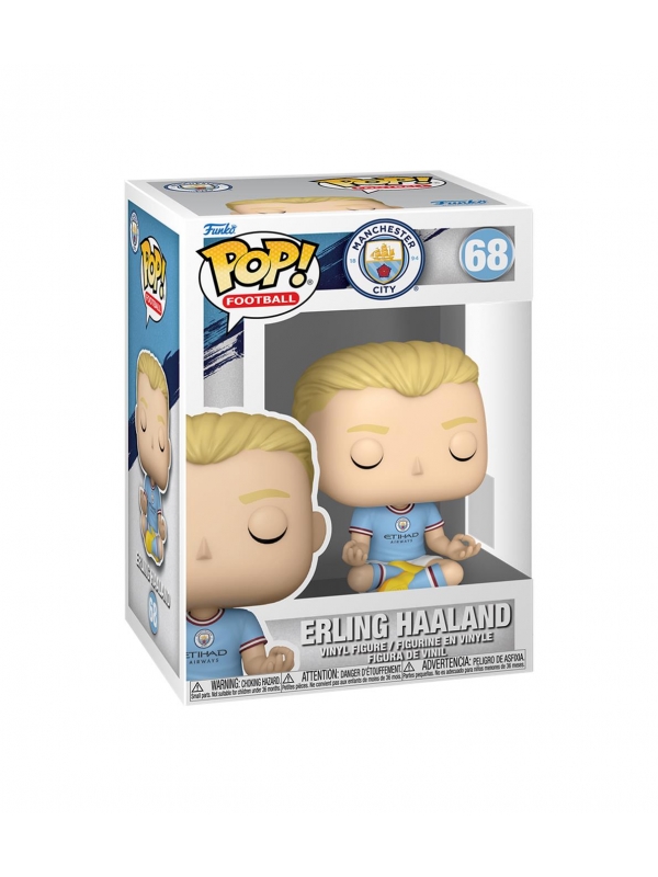 Esta figura Pop! Vinyl de Erling Haaland lo muestra con la camiseta del Manchester City en una pose muy original, sentado con las piernas cruzadas y los ojos cerrados como si estuviera meditando. Una representación divertida y diferente del delantero noruego más temido de Europa.