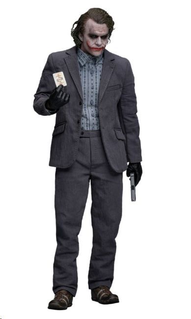 La locura se viste de traje! Esta impresionante figura articulada a escala 1/6 de The Joker (Bank Robber Version), basada en El Caballero Oscuro, captura al detalle la icónica interpretación del personaje durante el asalto inicial de la película.