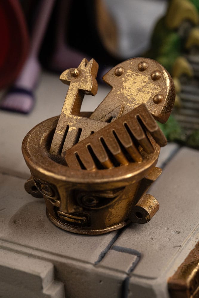 Fabricada en poliresina y con una altura aproximada de 28 cm, la pieza destaca por un esculpido muy cuidado y un trabajo de pintura detallado que respeta el estilo visual de la animación original. Los colores, las expresiones faciales y la base escénica aportan profundidad y dinamismo, convirtiendo la estatua en una escena completa pensada para lucir en vitrinas o estanterías destacadas.