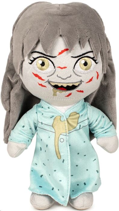 Este peluche de Regan de 27 cm forma parte de la colección oficial WB Horror y está inspirado en la icónica película El Exorcista. Con su bata azul, la mirada perturbadora y las marcas en el rostro, esta versión chibi del personaje es perfecta para fans del cine de terror que buscan algo tan adorable como inquietante.