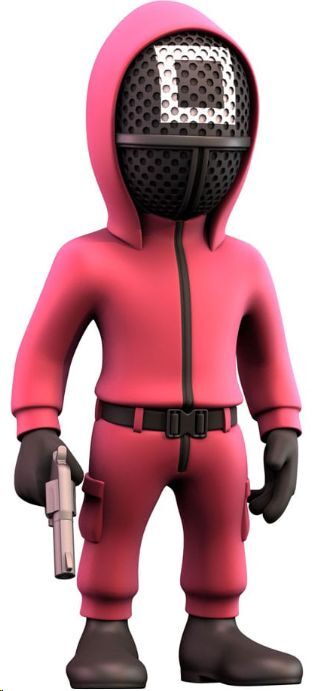 El guardia enmascarado con símbolo cuadrado de El Juego del Calamar toma forma en esta figura Minix de 12 cm que transmite autoridad y control absoluto. Vestido con el característico mono rojo y empuñando una pistola, representa a los encargados de supervisar y mantener el orden en el brutal juego.