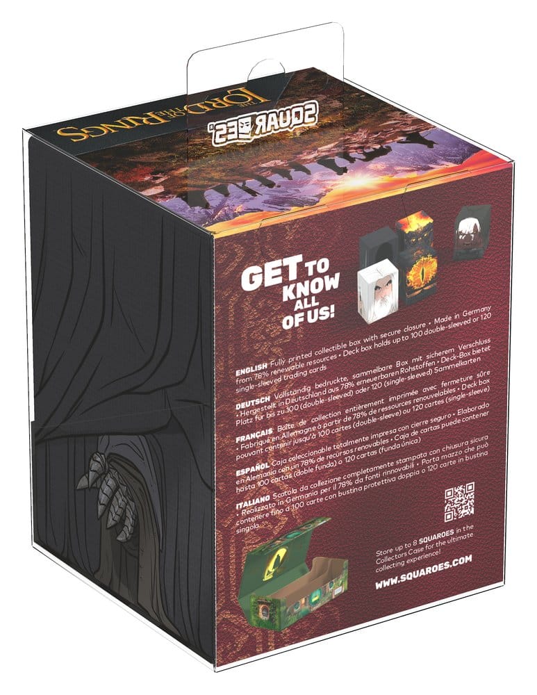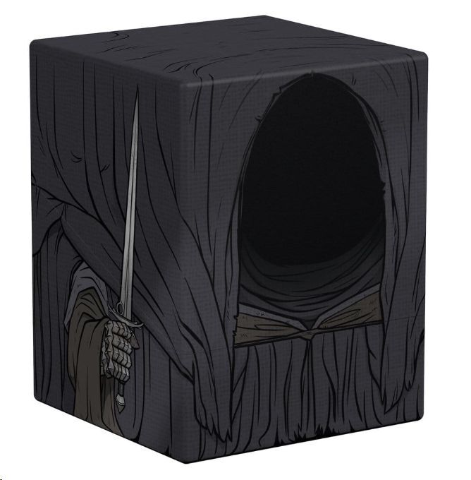 Adéntrate en la oscuridad de la Tierra Media con esta deck box Squaroe inspirada en la inquietante presencia de los Nazgûl. Su diseño sobrio y misterioso, con tonos oscuros y una ilustración cargada de tensión, captura a la perfección la esencia de estas figuras legendarias, aportando un estilo único a tu colección.