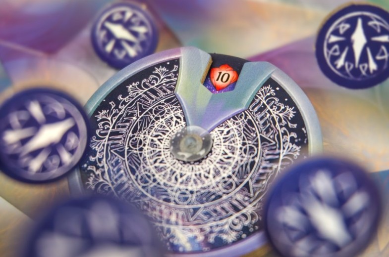Invócalas para poder utilizarlas pagando su precio en fichas de etherstone. ¿Cómo las conseguirás? Tomando alguno de los 5 dados disponibles en la mesa. Cada dado proporciona 2 fichas de etherstone de su color y te permitirá activar los poderes de tus cartas invocadas.