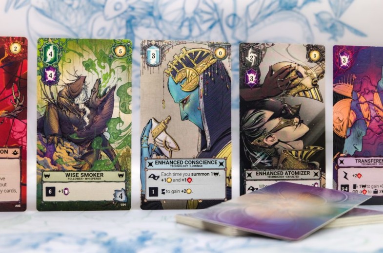Etherstone, un título de draft de cartas y dados. TCG Factory trae en español este nuevo juego de Thundergryph. Antes de empezar tendrás que crear tu mazo de 7 cartas y elegir tu líder. Podrás escoger entre tres tipos de cartas: seguidores, rituales y tecnología, que te ayudarán a atacar las amenazas, a realizar poderosos hechizos o a modificar tu estrategia.