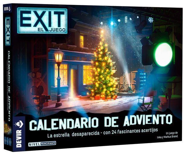 Esta edición de la saga Exit es muy especial. Para encontrar a la estrella cinematográfica desaparecida y resolver el misterio deberás resolver 24 enigmas, abriendo una ventana del calendario cada día. Detrás de cada ventana encontrarás un nuevo acertijo y cuando lo resuelvas avanzará la aventura y te prepararás para el día siguiente. Solo siguiendo las pistas y resolviendo los 24 rompecabezas llegarás hasta el final del misterio y encontrar a la estrella del taquillazo navideño.