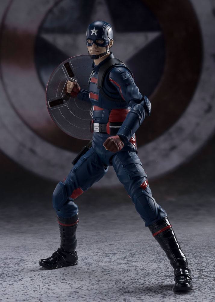 Tamashii Nations presenta para la línea S.H. Figuarts la figura de John F. Walker, el nuevo Capitán América, tal y como aparece en la serie de TV de Disney+ "Falcon and the Winter Soldier". Se trata de una figura articulada, hecha en PVC, de unos 15 cm de alto. Incluye varios accesorios como 1x cabeza alternativa sin yelmo, 3x pares de manos (3 de john y 3 de Winter soldier), pistola, cartuchera, escudo, correas escudo, efectos de movimiento del escudo.