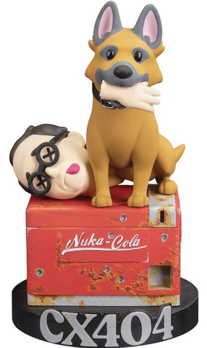 Sumérgete en el universo postapocalíptico de Fallout con esta divertida figura de CX404 y Wilzig. Con una altura de 20 cm, este diseño estilizado captura el inconfundible humor negro de la saga, mostrando al leal perro con una expresión traviesa mientras sostiene una mano en su hocico y descansa sobre una caja oxidada de Nuka-Cola. La combinación de colores vibrantes y detalles desgastados le da un toque auténtico que encantará a los coleccionistas.