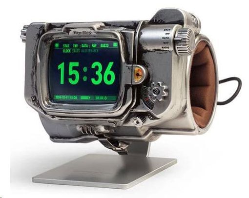 El Pip-Boy cuenta con una carcasa frontal de metal fundido a presión , con un acabado envejecido pintado a mano que reproduce fielmente el aspecto desgastado del dispositivo en el juego. Su pantalla LCD TFT permite visualizar información y activar funciones, como un reloj con indicador de hora y función de alarma , añadiendo un toque de funcionalidad al realismo de la réplica.