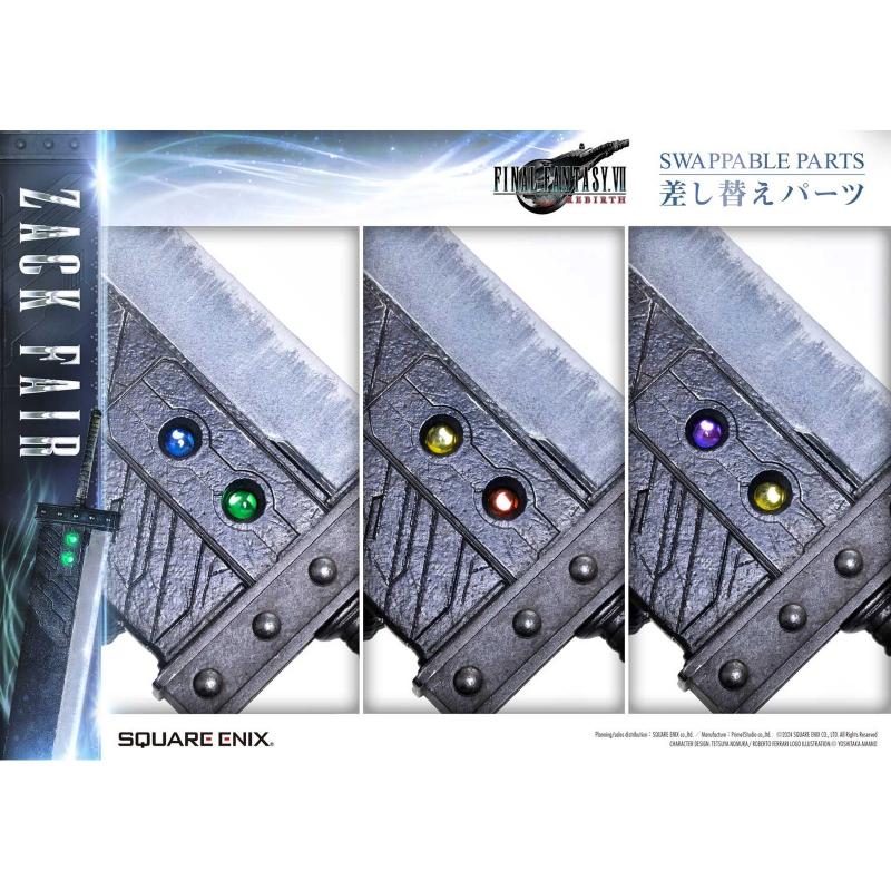 Desde la escultura detallada de su armadura y vestimenta hasta el acabado realista de la icónica Buster Sword, esta estatua es una representación fiel del espíritu heroico de Zack Fair en Final Fantasy VII Rebirth.
