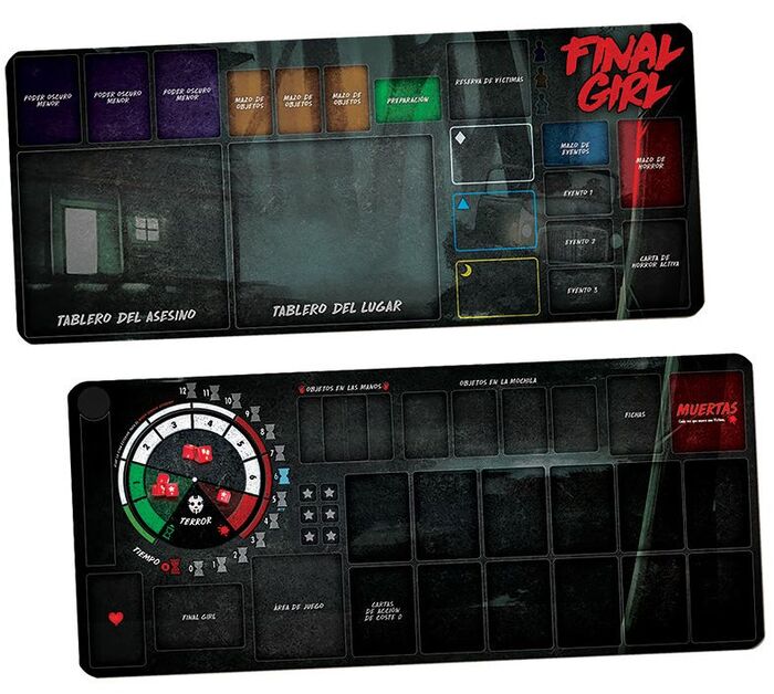 SET DE TAPETES DE JUEGO DE LA TEMPORADA 1. Incluye dos tapetes de lujo (70x30cm) de neopreno, hechos para mejorar tu experiencia Final Girl.