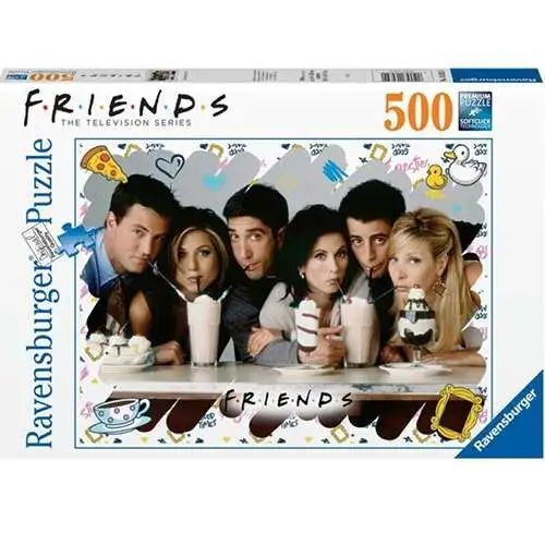 - Puzzle de 500 piezas con imagen de los protagonistas de la serie Friends, compartiendo un batido